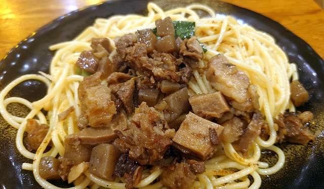 慌てて周囲を見渡すと、屋号は「牛スジまぜそば」となっており、店内のどこにも「ぼっかけ」の文字は見当たらない。ならばコンニャクがなくても間違ってはいないか。しかし、店の公式サイトは「本家ぼっかけまぜそば」とある。もうわけが分からん。