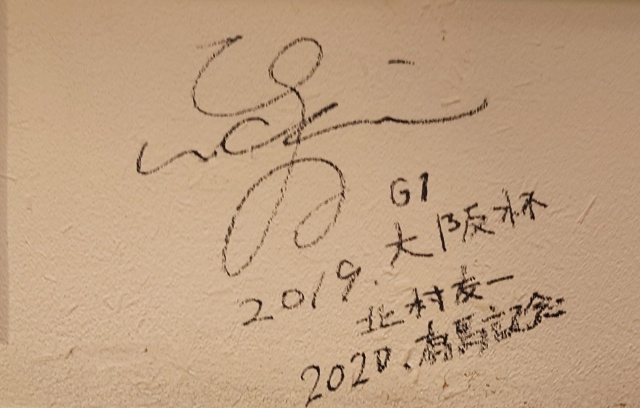 壁の片隅には北村友一騎手のサインがある。彼はかつて私が大阪に居を移したその日の有馬記念を勝った。しかしその後しばらくしてレース中の落馬で負傷。1年あまりの休養を強いられた。3年間も大阪に住みながら、彼に対する印象が意外なほど薄いのはそのせいであろう。
